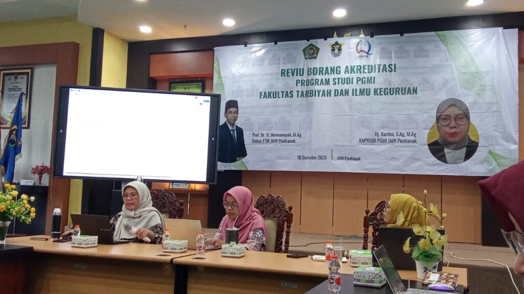 Pontianak, [18 September 2025] – Fakultas Tarbiyah dan Ilmu Keguruan (FTIK) IAIN Pontianak menggelar kegiatan Review Borang Akreditasi Program Studi Pendidikan Guru Madrasah Ibtidaiyah (PGMI) sebagai langkah strategis mempersiapkan reakreditasi program studi. Kegiatan ini dihadiri oleh pejabat penting di lingkungan FTIK dan Lembaga Penjaminan Mutu (LPM) IAIN Pontianak.